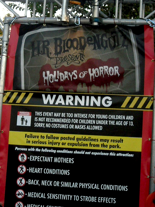 Sing it with me: "H.R. Bloodengutz... Who's your fiend when things get nuts, bitch!?" This was the most humor-infested maze and there were some great scares with the larfs. And the "Thanksgiving" scene had a very messed up, um, "main course" on the dinner table. Tasty!