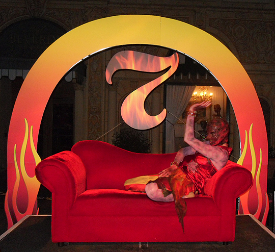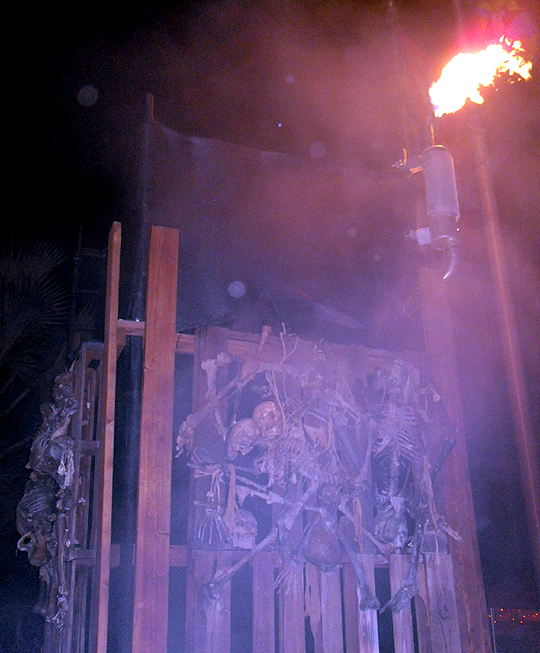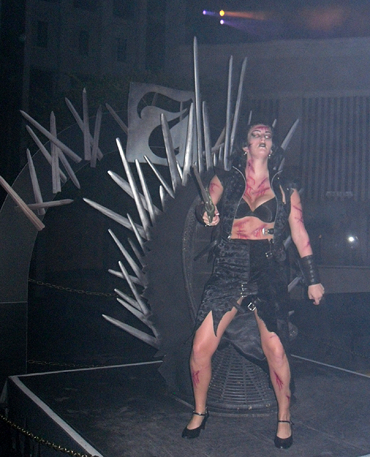 Seven was my favorite scare zone, though. The "Seven Deadly Sins" were "acted out" by winsome females, some more winsome than others. "Gluttony" was particularly stomach-turning. I think that is "Wrath" above.
