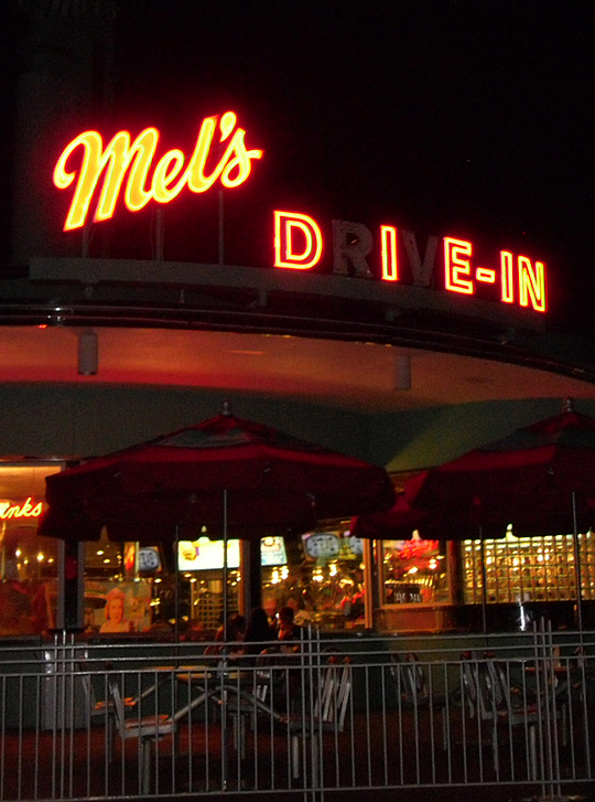 Little known fact: the park has a restaurant called "Mel's Drive-In," but for Halloween Horror Nights, they turn off the R and the V, so it says "Mel's Die-In."