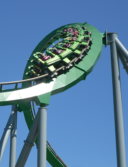 By Monday morning, we were pretty shot. But we did manage to find the energy to ride Hulk and a few other things back at IOA. Maybe we got lucky, but the Hulkster ran as gracefully as ever. No unpleasantness or sluggishness after the mid-course brakes at all. Yay!