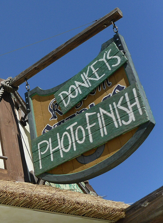 After that first morning in Harold's playground, we headed over to the Studios park to meet up with Chris and Natalee Godsey, and their daughter Caroline (who is getting cuter by the minute) to get Shreked. The show is still quite enjoyable, even though that film franchise is well past its expiration date. And after, we hung around at "Donkey's Photo Finish" for a bit.