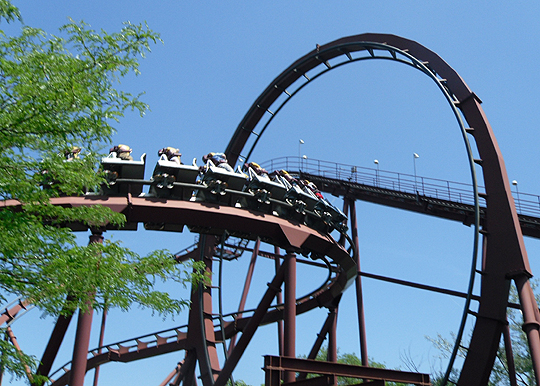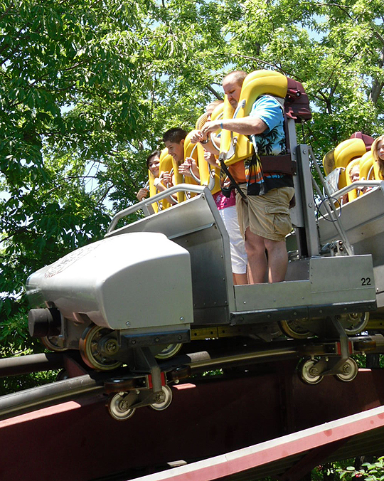 Now, we'd all heard more than enough warnings, but this is B&M's very first coaster, and even back in June, it was no secret that Iron Wolf was outta here. So we rode it. Also because we're sick credit whores. And you know what happens to whores? Sometimes they take a beating.
