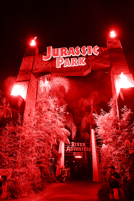 I still have not yet ridden Jurassic Park during an HHN event. I want to, but getting all wet at this late hour never seems that appealing. We should try it some time, maybe in '13.