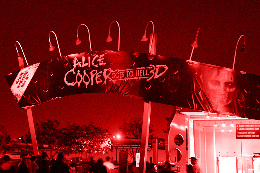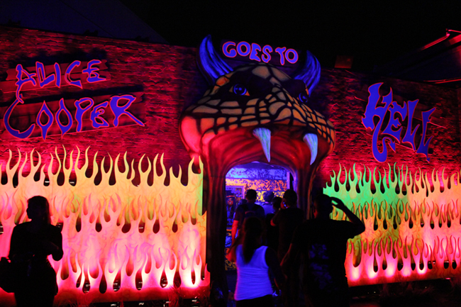 As mentioned earlier, this is Alice Cooper's second USH HHN maze, but it is entirely different from last year's Welcome To My Nightmare. First, as you might have already guessed, it's in 3D. (And it has also taken up residence in the home of last year's House of 1,000 Corpses 3D maze.) Second, this maze is less directly inspired by songs in the Cooper catalog.