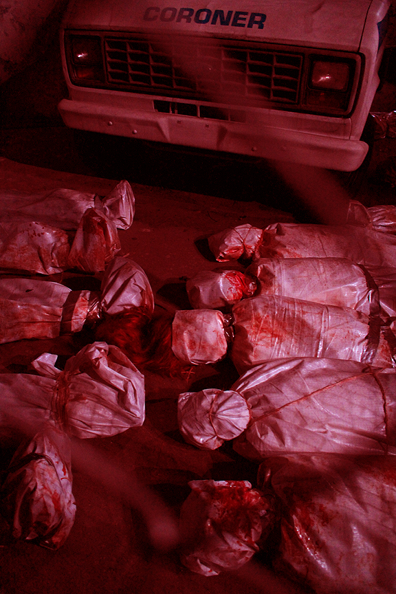 More zombies, bring it on! So right out front, there are a whole bunch of bloody body bags on the ground and if that gives you the willies, you are in for a world of hurt inside this maze.