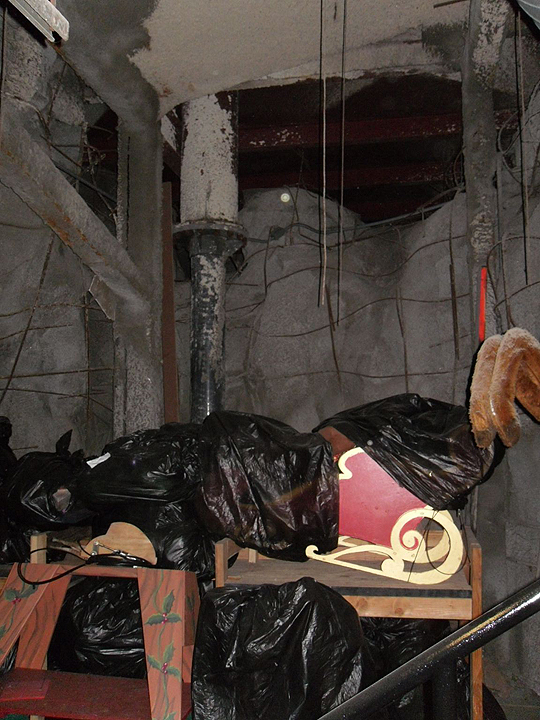 Props sitting tight for the Christmas overlay! The caverns serve as a huge storage shed for all kinds of things. And we learned that the period between Haunt and Xmas is super-busy, pulling out one set of goodies for another, in a very short period.