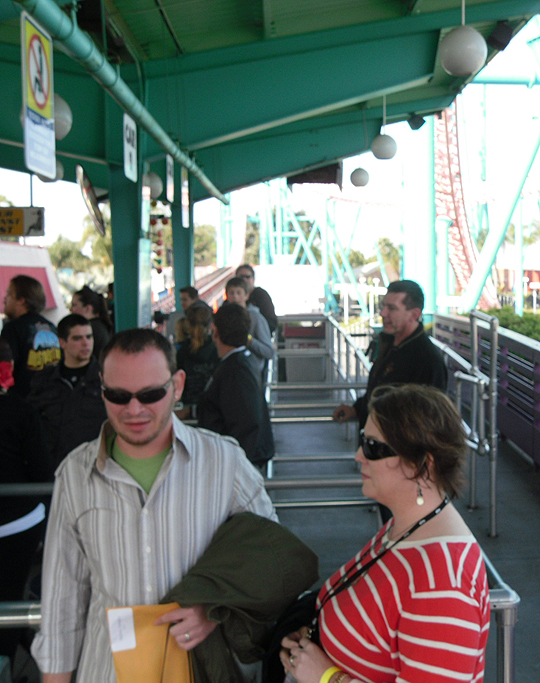 The Season Pass' Doug and Shannon and very few other people, waiting patiently to enjoy one of the best coasters in California. Some would argue the best steel coaster in the state, for sure.