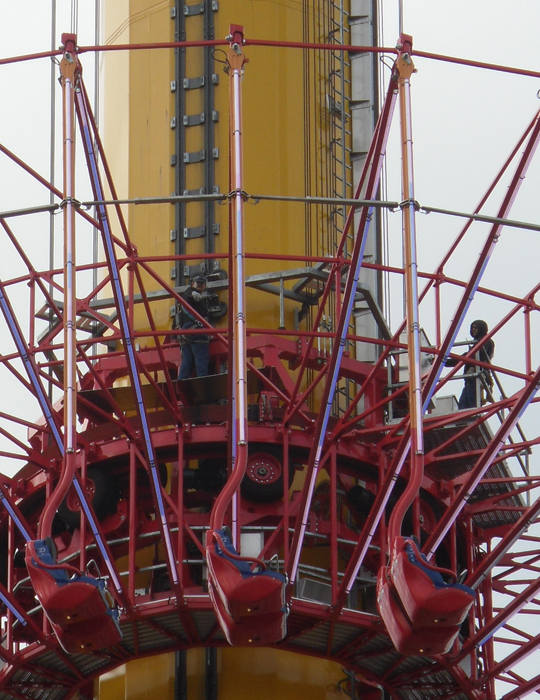 While waiting for things to begin, we caught a glimpse of Windseeker's crew doing some preflight work. How'd you like to climb that tower standing on those platforms?